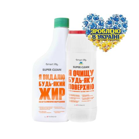 До набору входить Засіб для видалення нагару, пригорілих забруднень та жиру + Порошок для чищення з активним киснем Smart Life.